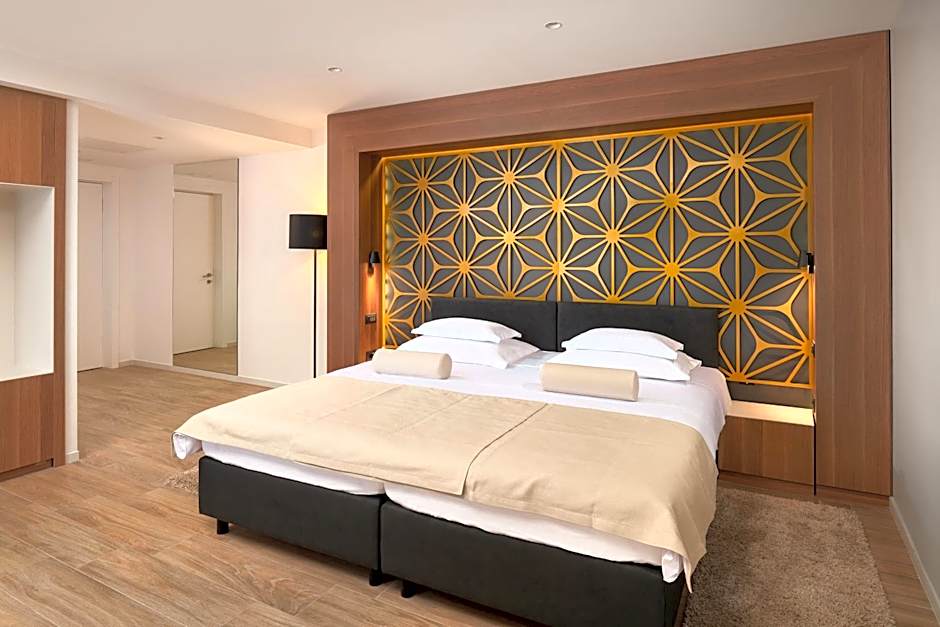 The spacious twin/double room offers air conditioning, soundproof walls, a balcony with an inner courtyard view as well as a private bathroom boasting a walk-in shower.